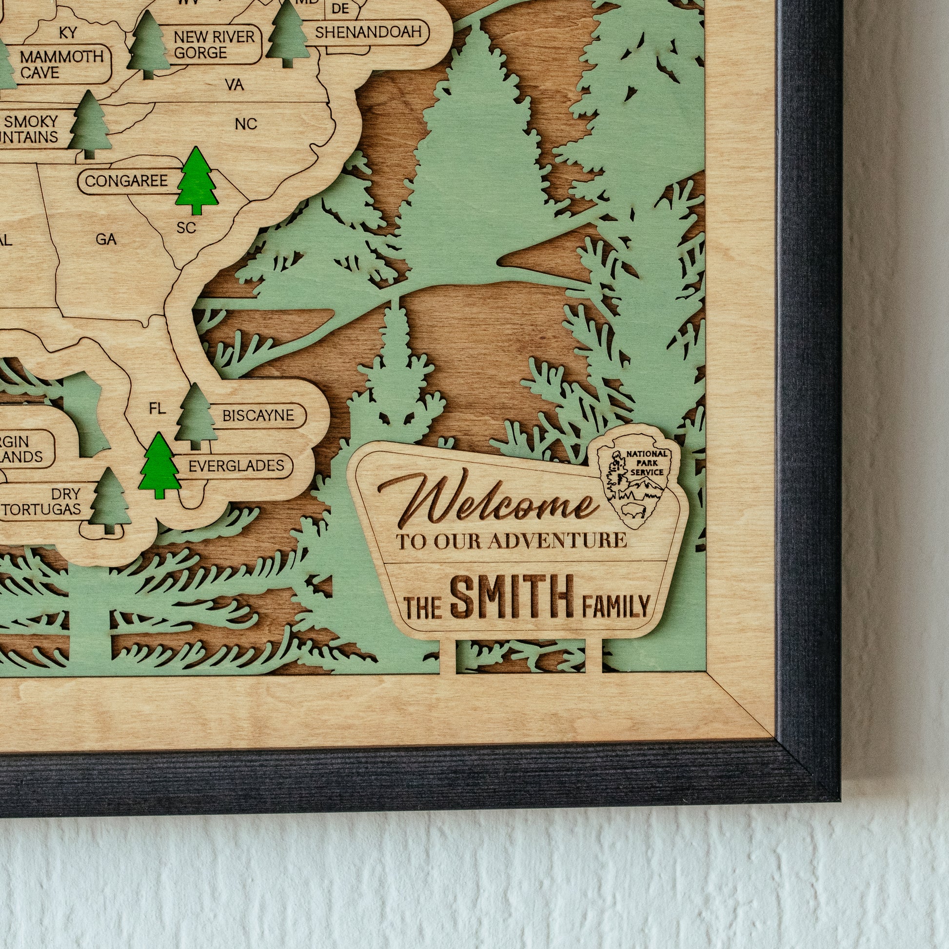US 3D Wooden National Parks Travel Map With Trees To Record Park Visits (Forest)